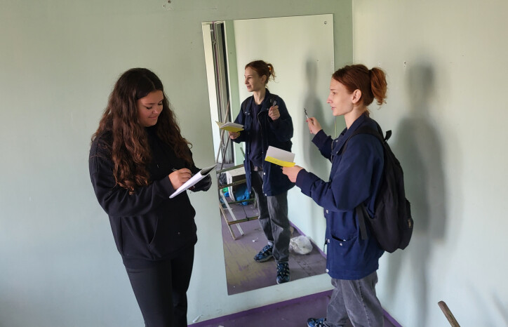 Attēlos: Latvijas Mākslas akadēmijas studenti Elīna Kristiāna Rītere, Dāvids Zagorskis, Evelīna Laizāne, Nikola Ulriha, Dagne Kaupe un Grieta Šmite ar LMA vieslektoriem Mariju Katrīnu Dambi un Florianu Betatu.